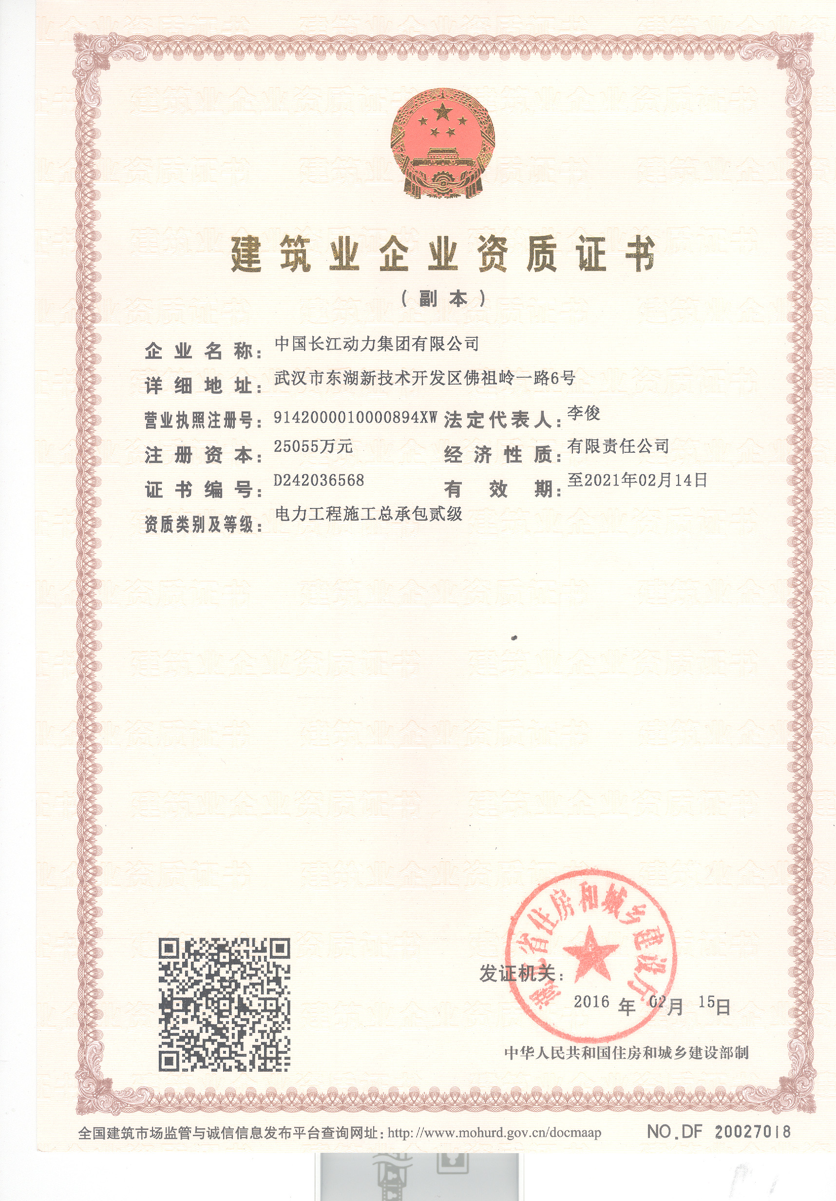 电力工程总承包资质证书