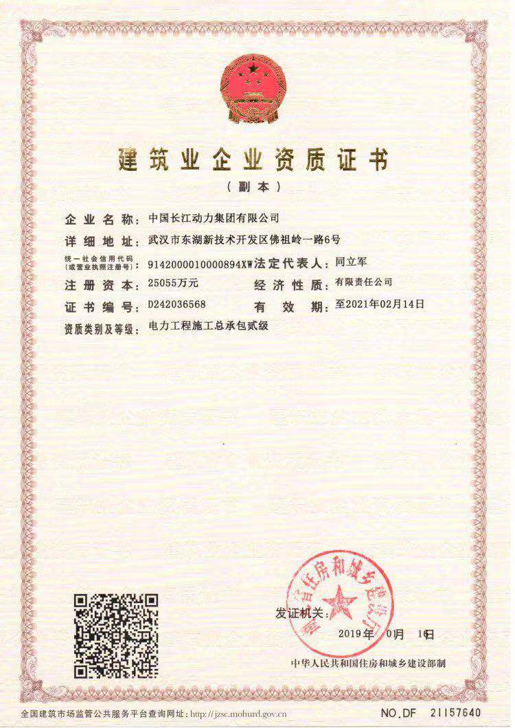首页 > 走进永利yl23411集团 > 资质证书电力工程总承包二级资质
