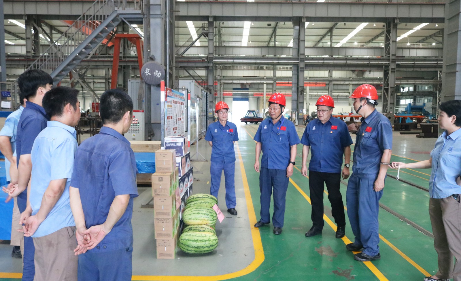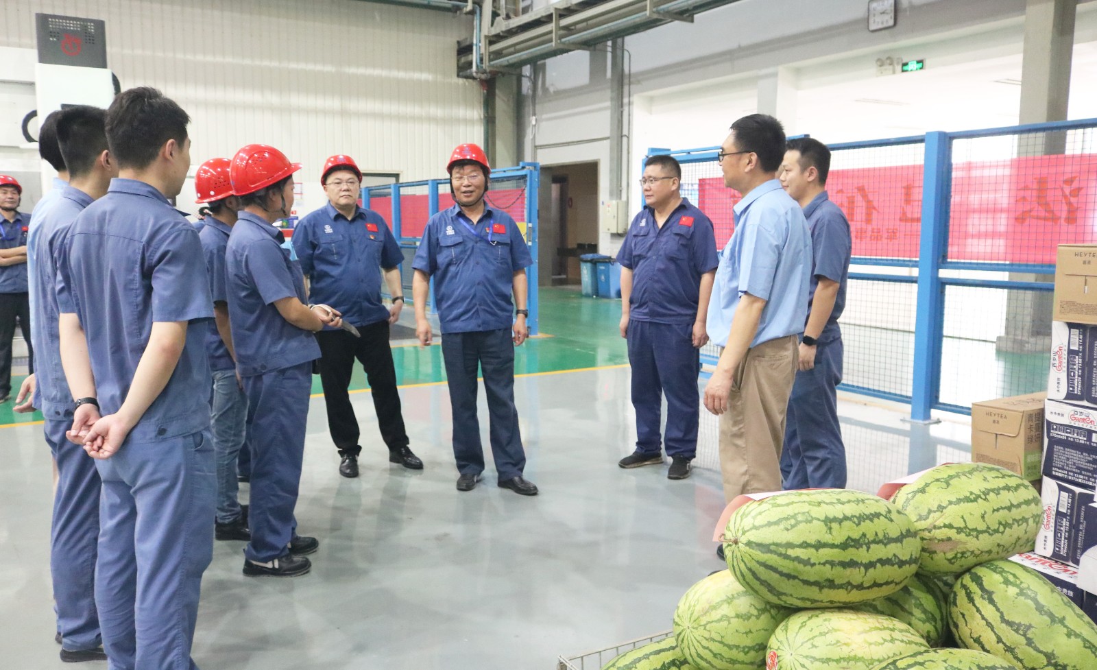 7月16日下午,永利yl23411集团集团党委书记、董事长林小传,党委副书记、总经理郭涛,党委副书记、工会主席罗松等来到各事业部生产现场,看望慰问一线职工,检查防暑降温工作,要求公司两级党组织和党员干部坚持以人民为中心的发展思想,切实抓好夏季安全生产工作,维护好职工身体健康和企业安全和谐发展。